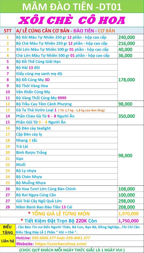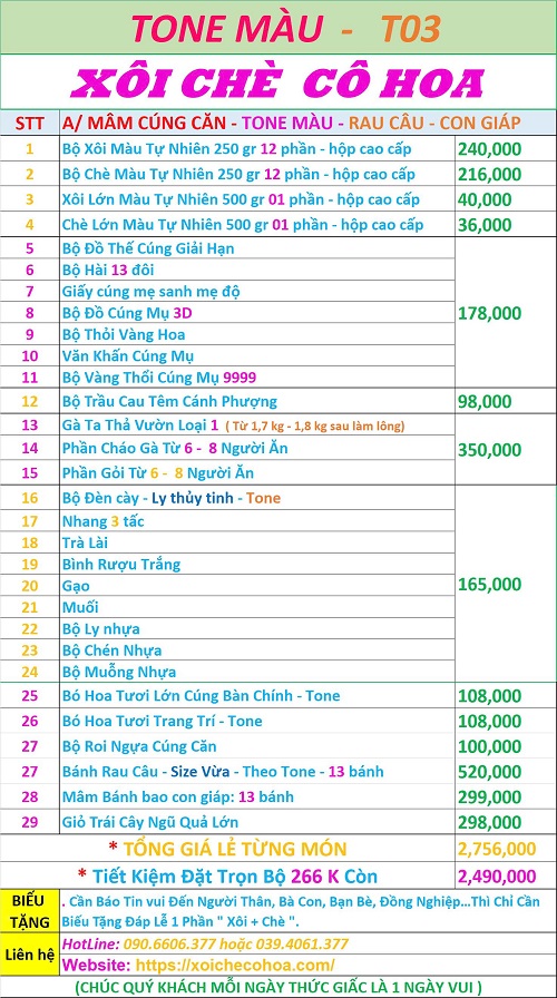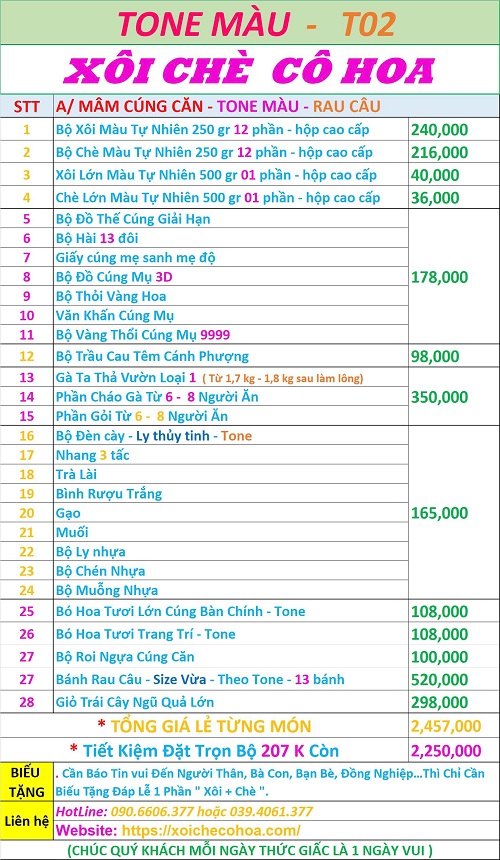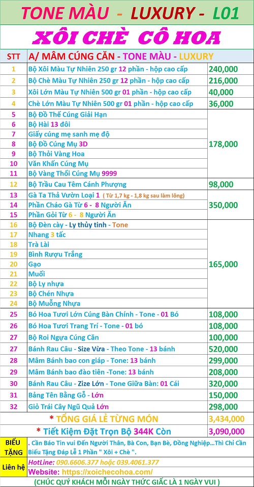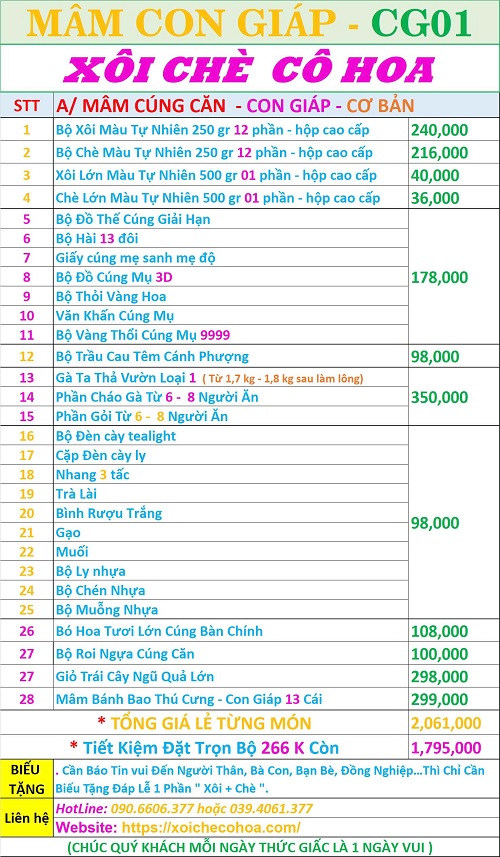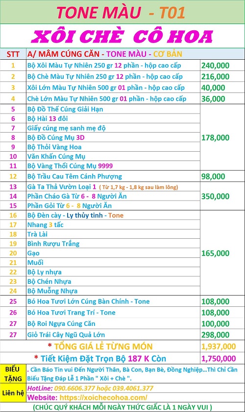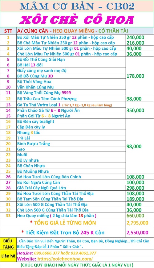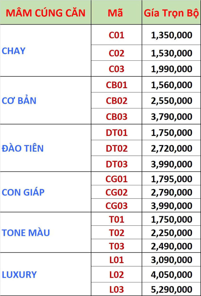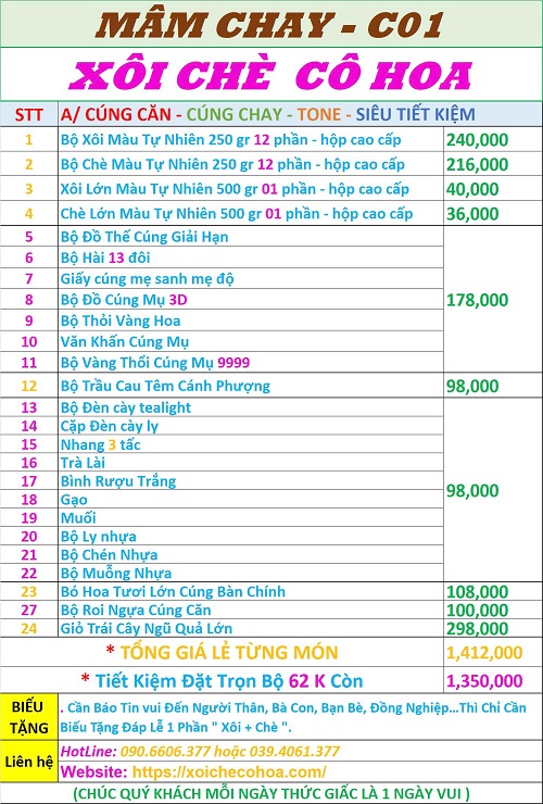 Bảng giá bộ lễ cúng căn đơn gian khách thường đặt nhất