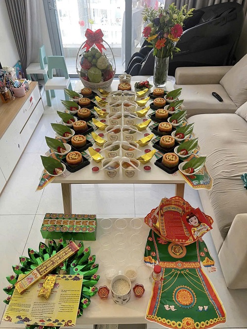 Mâm cúng dành riêng mười hai bà mụ và các đức ông, đức thầy