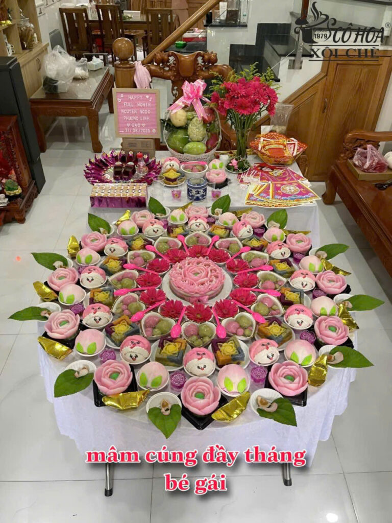 – Cần báo tin vui đến nhiều người thân bạn bè, đồng nghiệp, hàng xóm chung vui với gia đình thì chỉ cần đặt thêm xôi chè tặng mỗi 1 mối quan hệ 1 phần xôi cộng chè vừa ngon vừa đẹp là được.