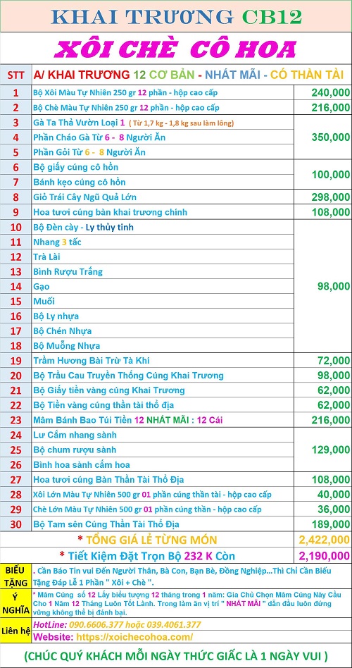 – HOẶC Click Xem: GIÁ BÁN LẺ ĐỒ CÚNG KHAI TRƯƠNG CỬA HÀNG