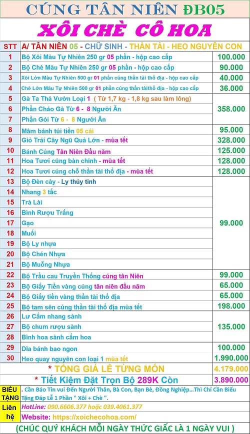 II/ TRỌN BỘ MÂM LỄ TÂN NIÊN CÓ HEO GIÁ BAO NHIÊU?