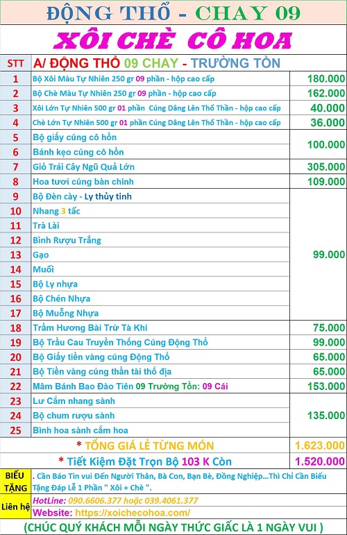 – Bộ Xôi Chè cúng động thổ 09 “Trường Tồn”: